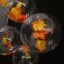 Go beyond your dining table and think about the area over it. Hang items from your ceiling or chandelier to add some whimsy and wonder to your Christmas table.