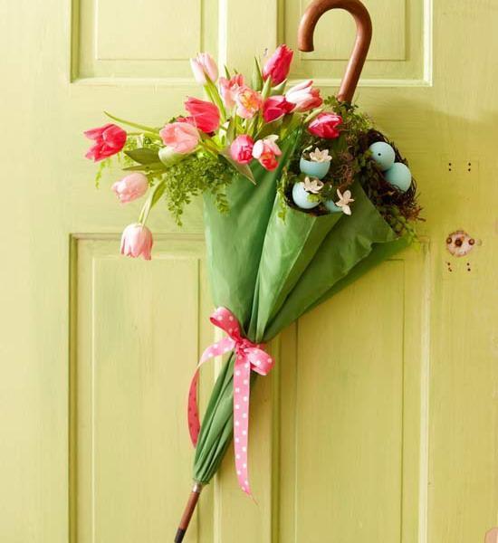 Colorful Easter decorations created with eggs, fabrics and spring flowers look festive and spectacular on doors, walls and holiday tables. Creative simple Easter ideas bring out the best, creating a wonderful atmosphere and inviting holiday tables in spring homes.