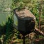This modular shelving system shows an innovative and interesting design idea that blends the heavy look of natural stone and lightness of natural cork material.