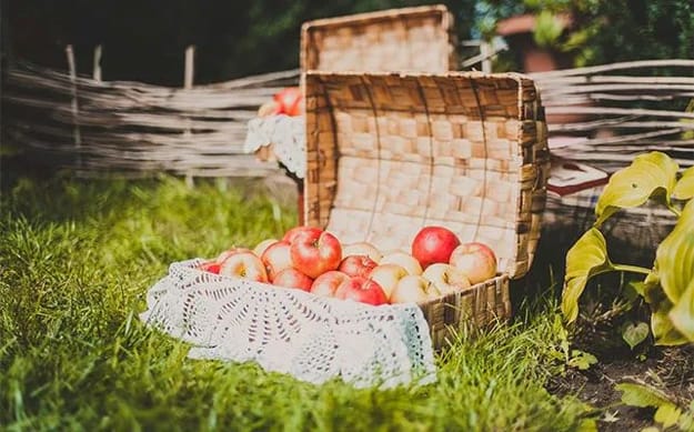 Apples are a perfect, symbolic material for fall decorating. Their charm, rounded shapes, glossy skin, and color turn them into versatile seasonal accents. You can use them in centerpieces, place settings, garlands, or even hollowed out as candle holders. They pair beautifully with eucalyptus, cinnamon sticks, and velvet ribbons on holiday tables. Yard topiaries in apple shapes make gorgeous fall decorations, too.