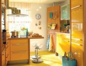 Bright green wall design and changing color lighting design added by architect Rudolph Lesnak to contemporary apartment ideas create unique and...