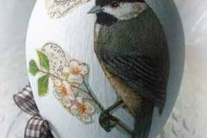 Lace textures and crackle finishes add charming details to egg decoupage. Gentle distressing makes the art pieces look as if they have a long, captivating story. Whether you choose real, blown-out, wooden, or plastic eggs, their surfaces are perfect little canvases for vintage-style decorating.