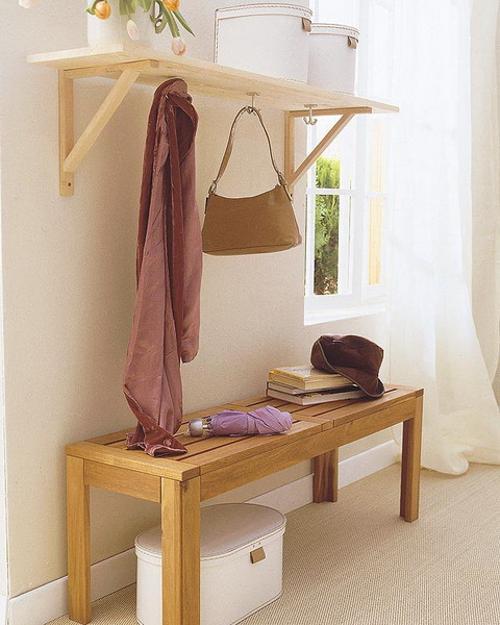 Wooden entryway benches and storage chests, wall mirrors, simple open shelves, hooks, coat racks or space saving wall cabinets can adorn any foyer decorating, adding unique character and beautiful accents to small rooms.