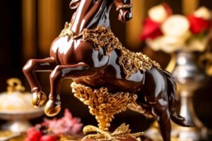 Dark chocolate horse dessert, fabulous holiday table centerpiece