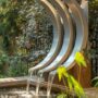 6. Vertical Green elements around an outdoor shower, swimming pool, spa-like outdoor bathroom, and other water features